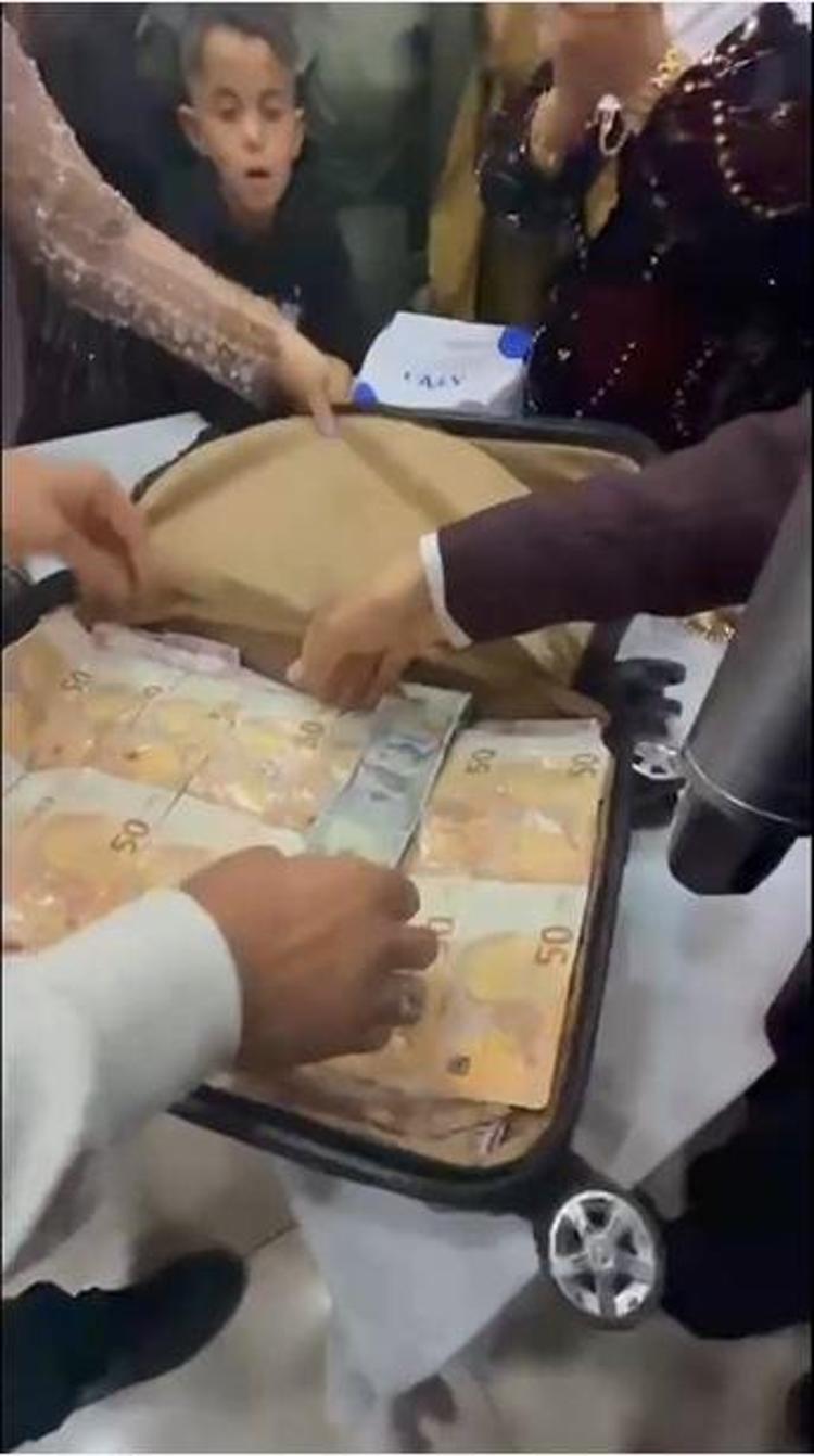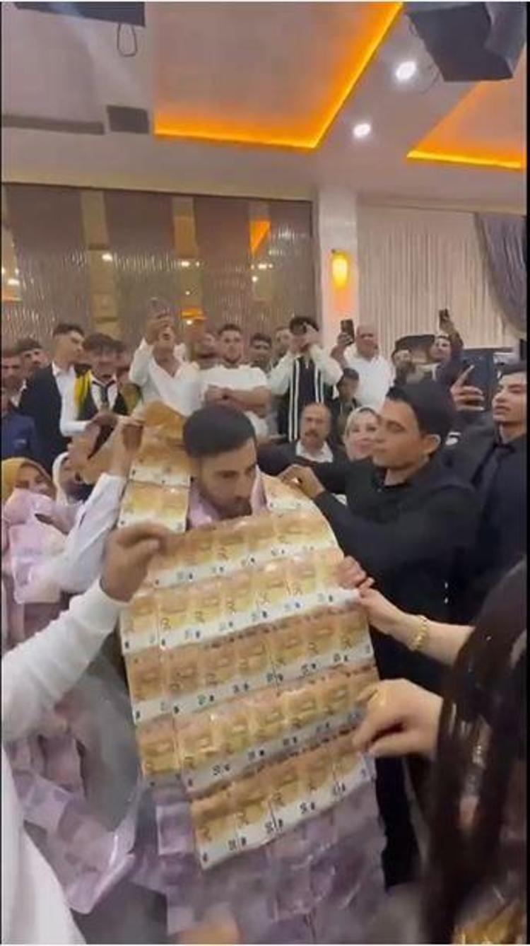 Kızıltepe ilçesinde hafta sonu yapılan aşiret düğününe Avrupa’dan gelen Nehir Vinç, damat olan kardeşi Halil İbrahim ile geline, valizle getirdiği 50 avro ve 200 Türk lirası banknotlarıyla yaptırdığı yeleği giydirdi. Vinç, çifte ayrıca 100 dolarla hazırlanan taçları taktı. Ağabeyinin takılarının çifti şaşırttığı görülen düğüne katılan davetliler ise ağabeyi uzun süre alkışladı. Gelin ve damadın üzeri banknotlarla kaplanırken, o anlar ise çevredekilerin cep telefonuyla görüntülendi.