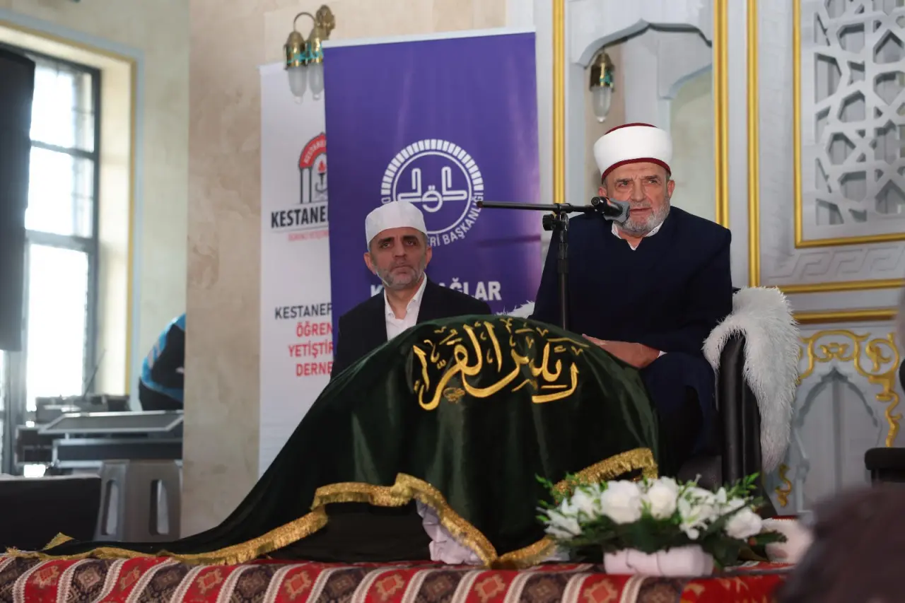 Kur’an-ı Kerim’i Güzel Okuma Yarışması Türkiye birincisi Aliağa Müftülüğü Kestanepazarı Hacı Tülay Çolakoğlu Kur’an Kursu öğrencisi Mehmet Küççülü’nün Kur’an-ı Kerim tilavetiyle başlayan programda, Kestanepazarı Mezunu hafızların yanı sıra, ülkemizin önde gelen kurra hafızları Kur’an-ı Kerim ziyafeti sundu.