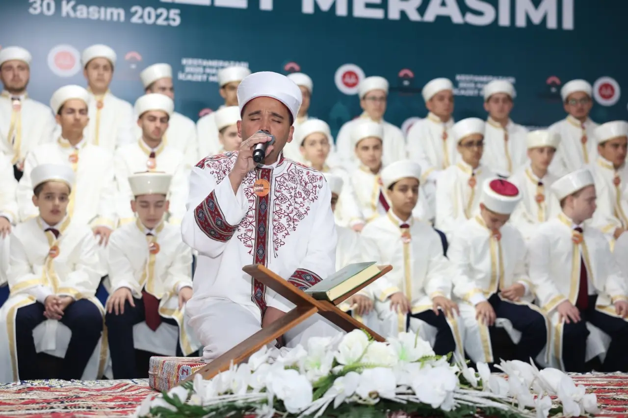 Karabağlar Kestanepazarı Hatay Kur'an Kursu Öğreticisi 2019 Dünya Kur-an-ı Kerim Güzel Okuma  Yarışması ikincisi Hafız Enes Kaput da yeni hafızlar töreninde Kur'anı Kerim okudu…