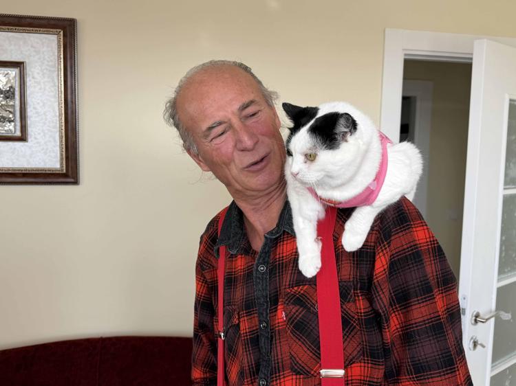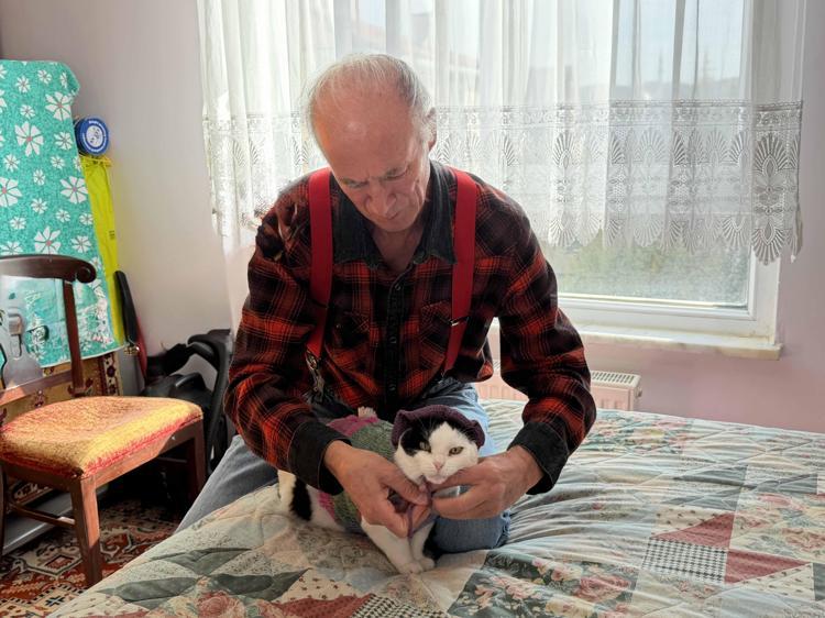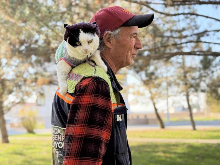 12 yıl önce sahiplenip birlikte 65 şehir gezdiği kedisi omzundan inmiyor Eskişehir’de 12 yıl önce sokaktan sahiplenerek ‘Sylvia’ adını verdiği kedisini omzunda taşıyan Mustafa Rahmi Erçetin (65), görenlerin ilgisini çekiyor. Özel bir bağ kurduğu kedisiyle bisiklete binip, spor yapan, kafe, restoran ve parklara da gittiklerini söyleyen Erçetin, “Kedimle 65 şehir gezdik, en büyük dileğim Sylvia ile Selanik’e gitmek” dedi.