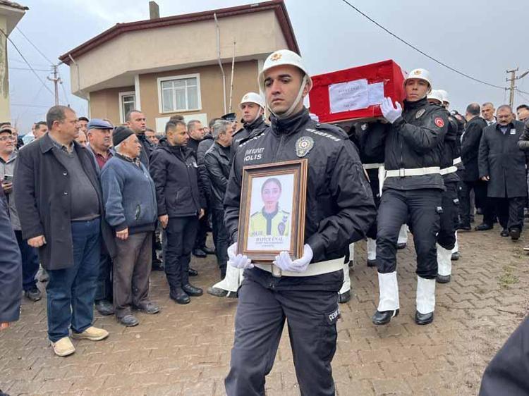 Manisa'nın Alaşehir ilçesinde trafik polislerinin bulunduğu ekip aracının park halindeki TIR'a çarptığı kazada yaralanan, tedavi gördüğü hastanede 14 gün sonra şehit olan polis memuru Hatice Ünal (24), memleketi Çankırı'da son yolculuğuna uğurlandı.